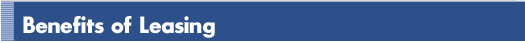 Conserve Cash Flow - Iindividual lease payments are usually less than those of conventional loans because the terms are extended for longer periods of time and thus reduce demands upon cash flow. Leases can normally be structured so that the equipment can pay for itself.